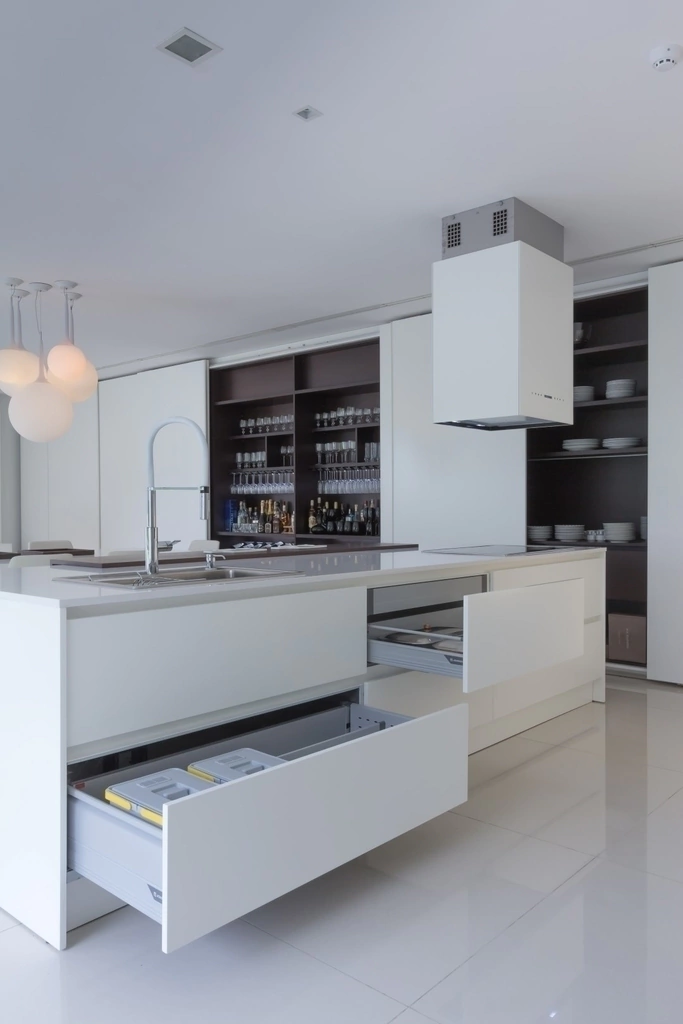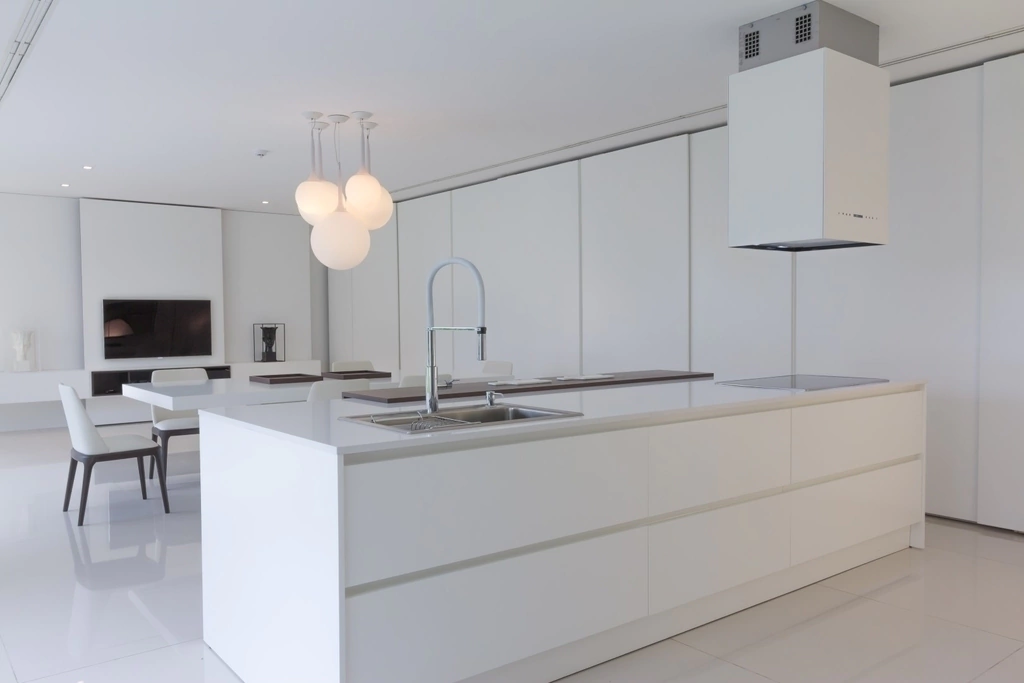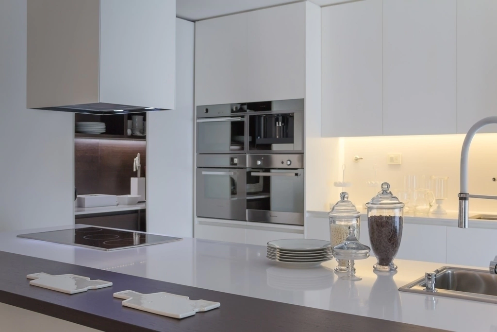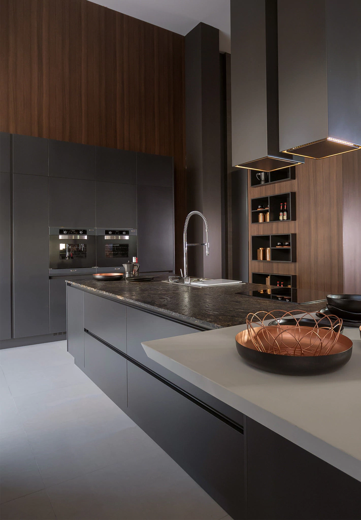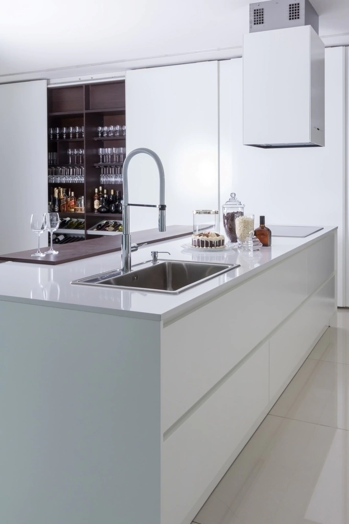 Sencillez de composición y riqueza de materiales son las características fundamentales del modelo Gofratto. Sus puertas laqueadas texturadas sin herrajes de líneas puras, conforman una cocina que se viste con la elegancia del color. Para este modelo, son suficientes pocos elementos para crear un sin fin de composiciones con alto nivel de diseño y prestación.